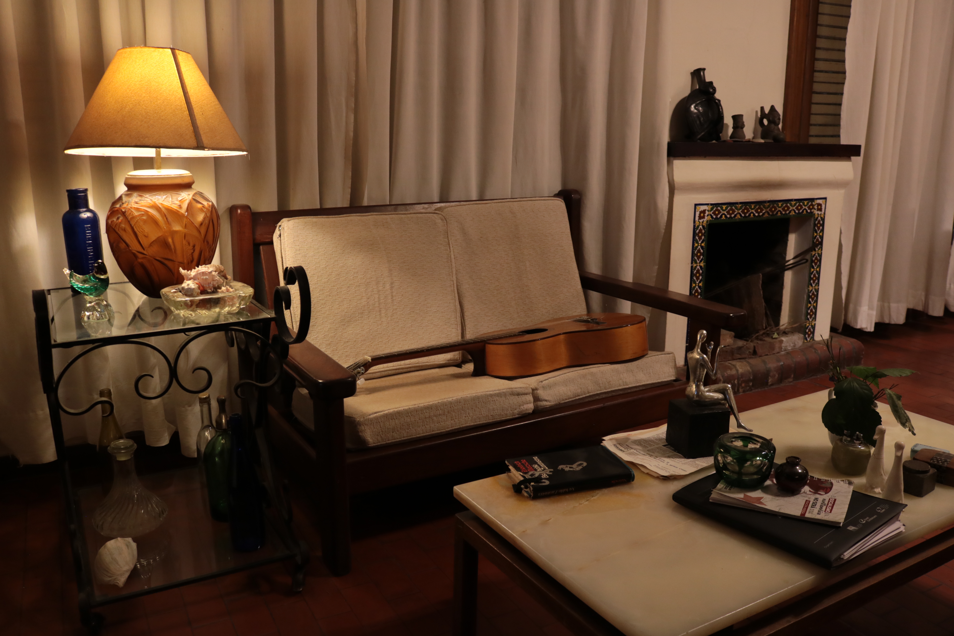Elegimos este espacio ya que nos pareció interesante la iluminación artificial del mismo y el ambiente que genera. La diversidad de texturas también nos resulta interesante ya que contribuye a que se cree un ambiente acogedor. Los diferentes objetos que se encuentran en el espacio nos dan indicios de ser habitado por una persona mayor, que utiliza este lugar para desarrollar distintas actividades artísticas, tales como: tocar la guitarra, leer, escribir y pasar el tiempo lejos de las obligaciones.